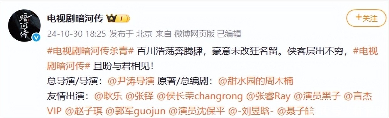 今年十月剧集上线后,谢霸成为《暗河传》中最富张力的角色之一。