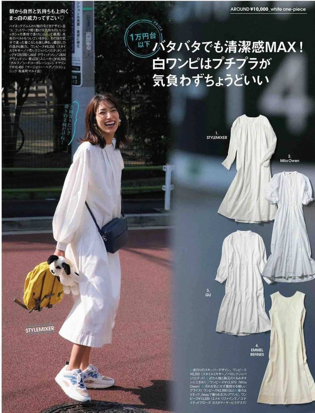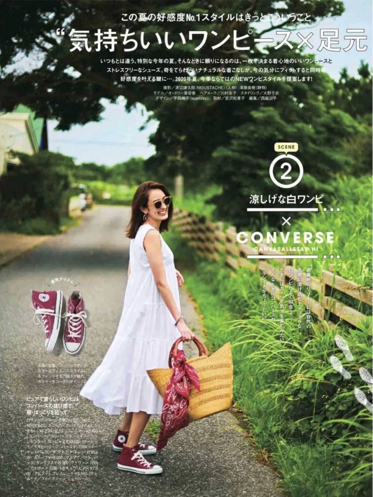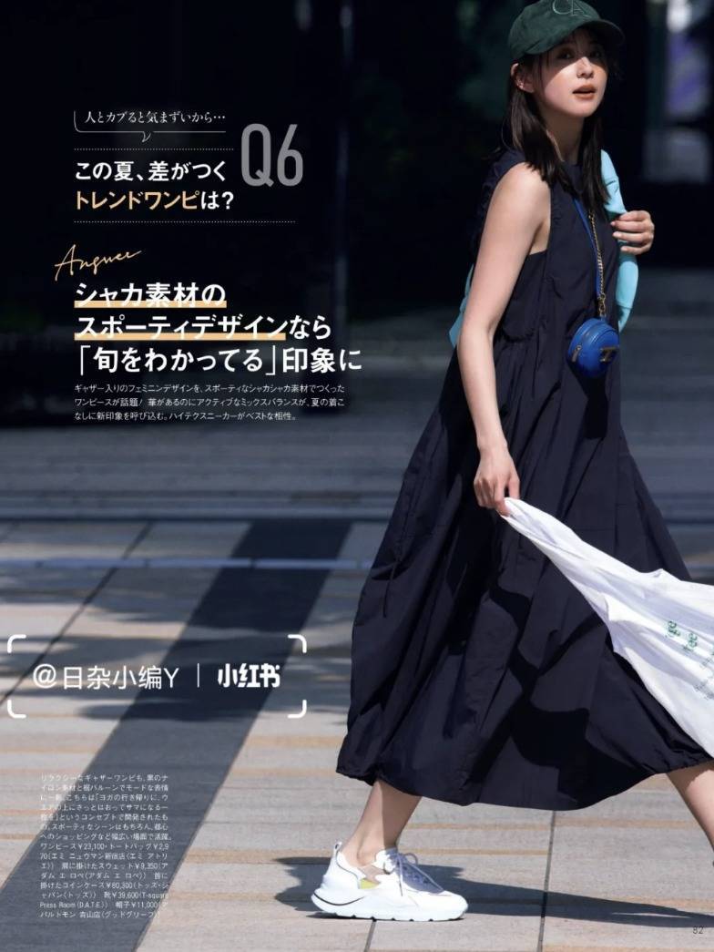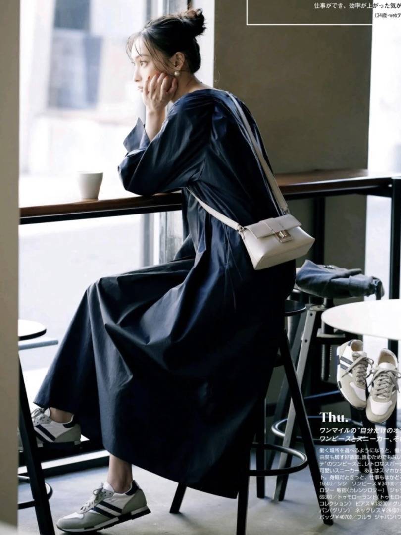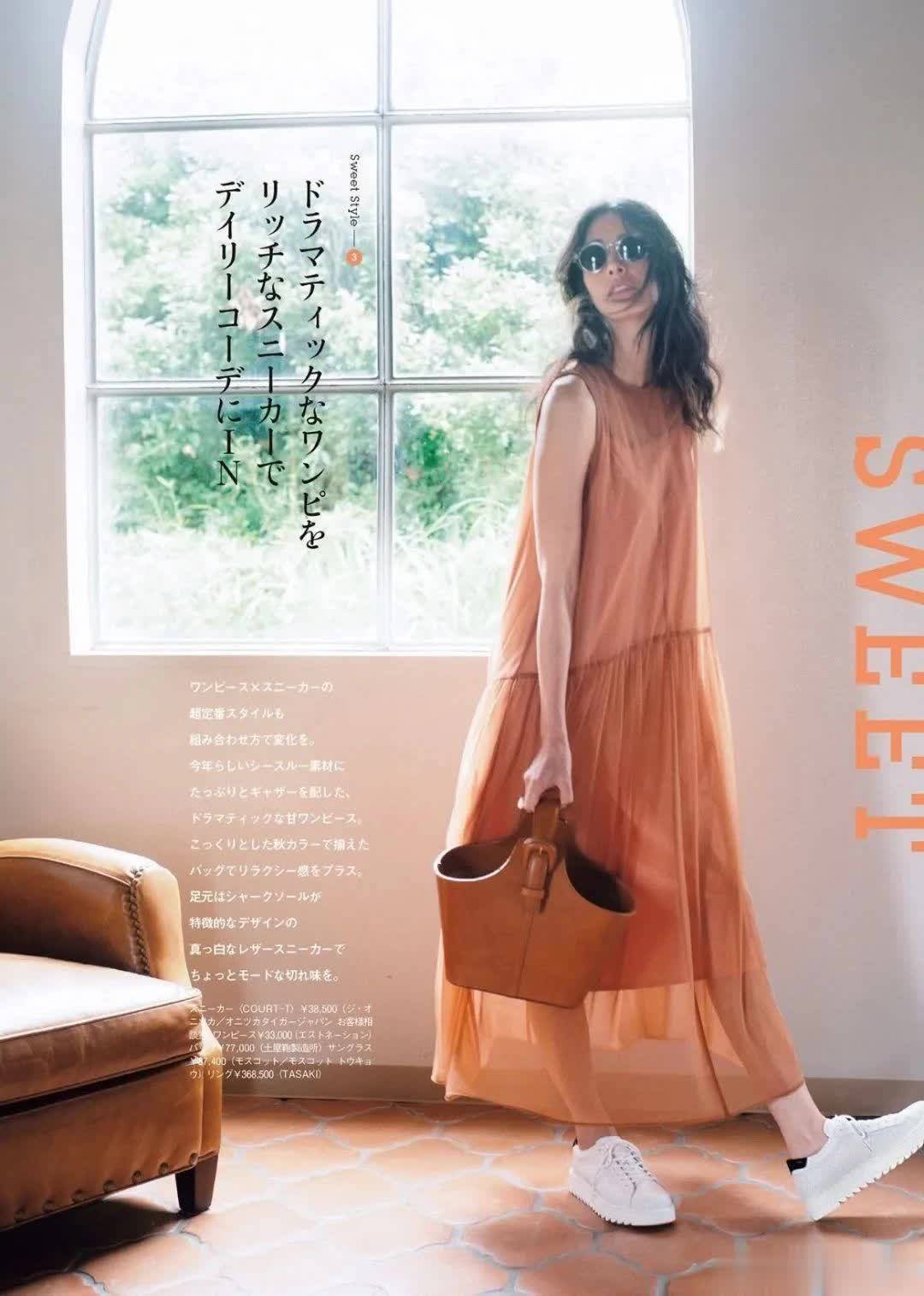 因为日式风格都是比较素雅的单一颜色,所以备一双中性色的运动鞋就能百搭所有裙装。