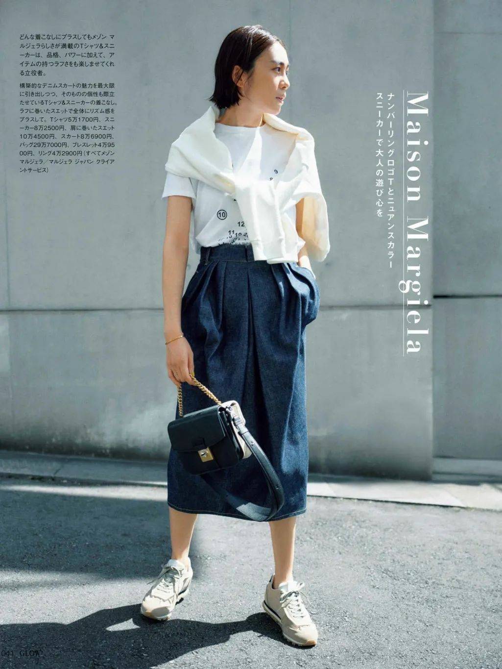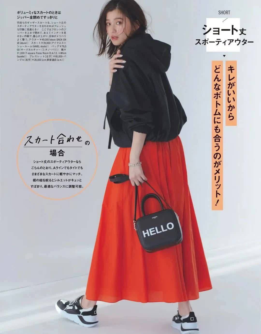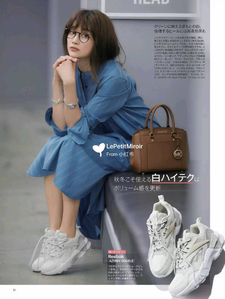 因为裙子本身就足够宽松肥大,所以搭配轻便的鞋子很容易显得头重脚轻,所以搭配厚底的老爹鞋会更加稳妥。(而且日本普遍身高不高,厚底运动鞋也能无形中增高3-5cm)