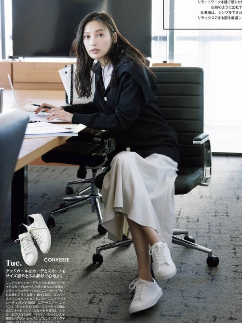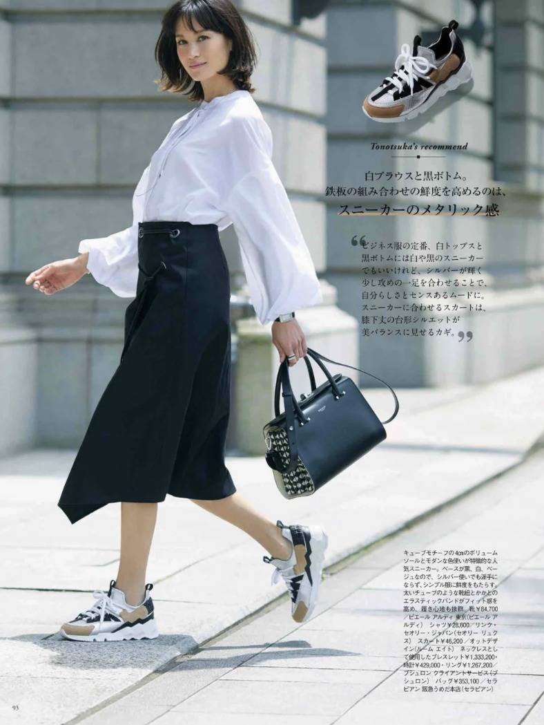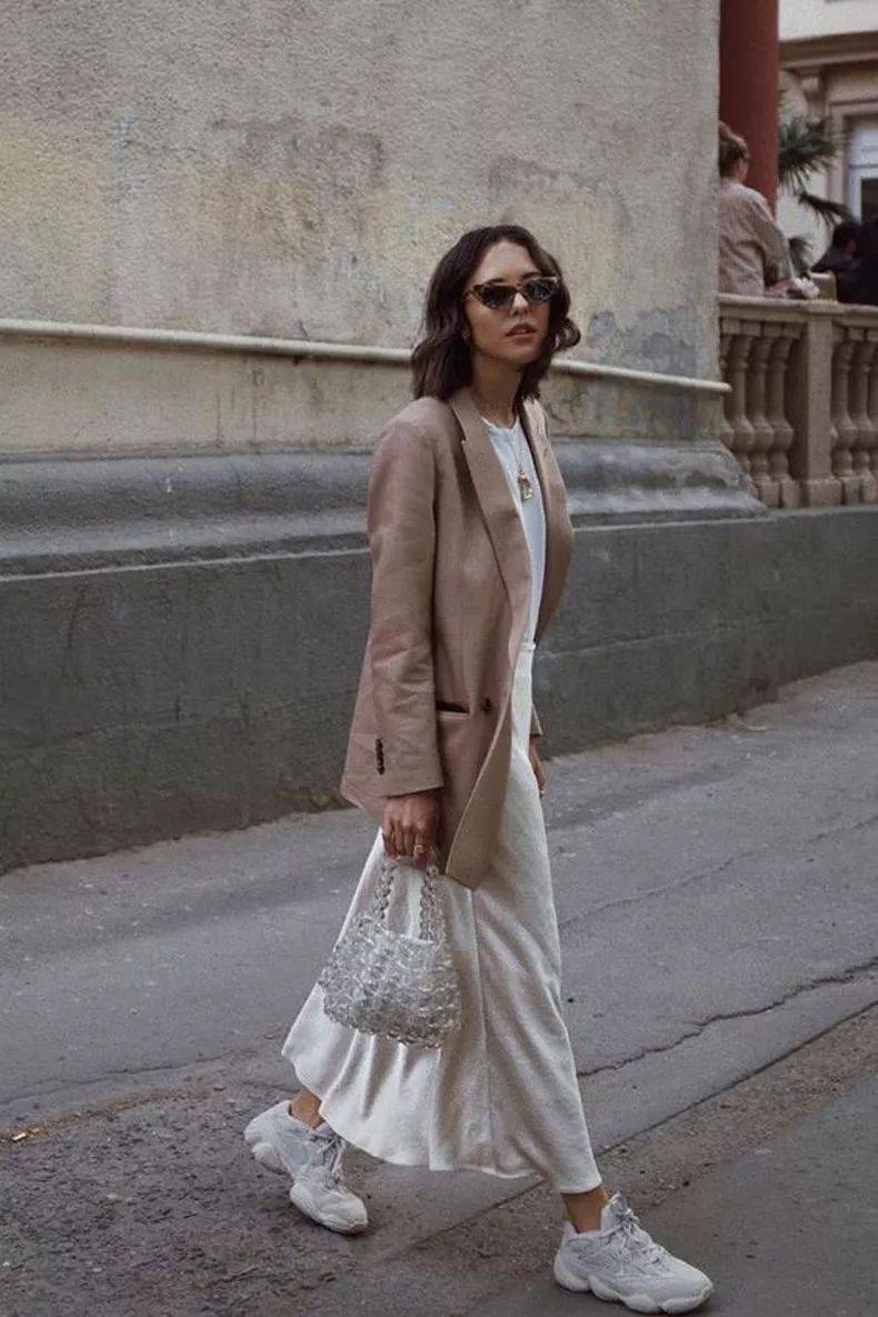 运动鞋+裙子,其实也能穿得很职场。