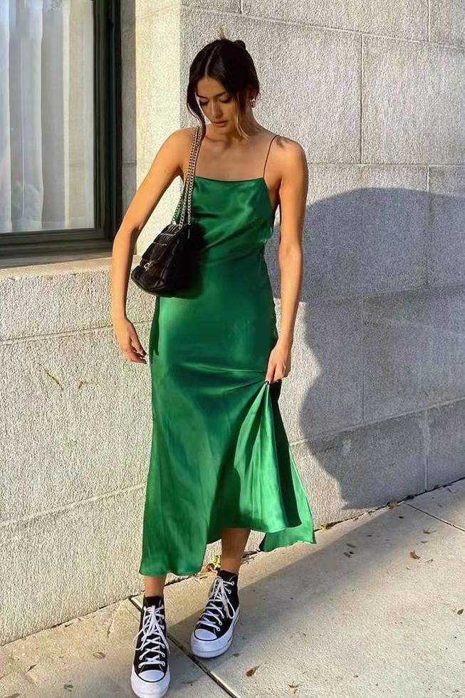 一件简约而不失品味的缎面裙,更是让你高级显贵。