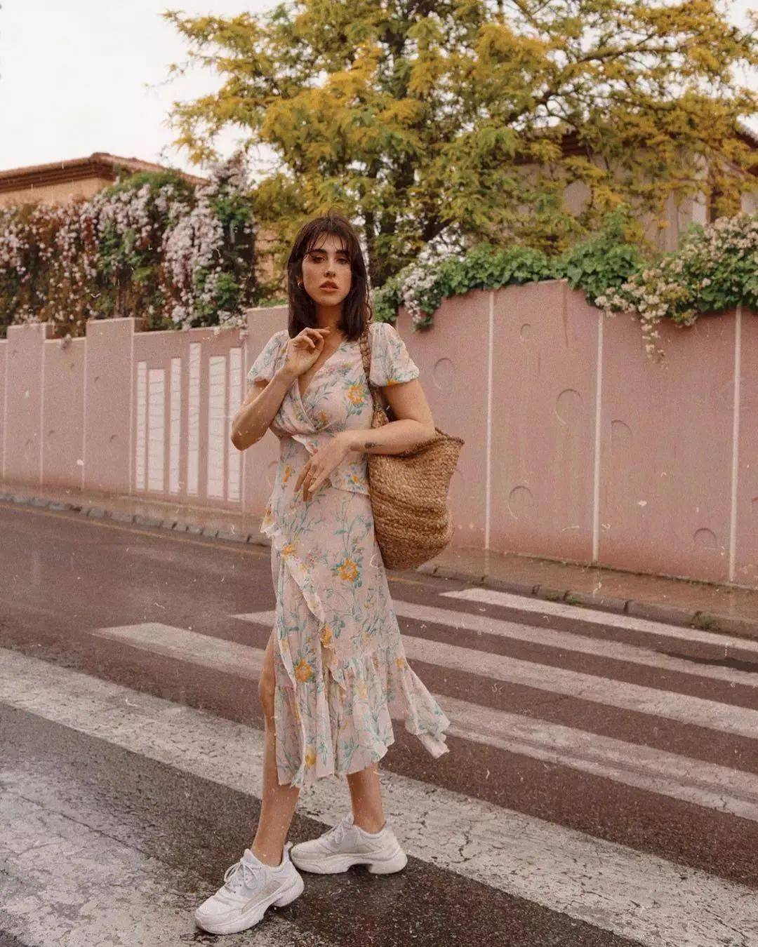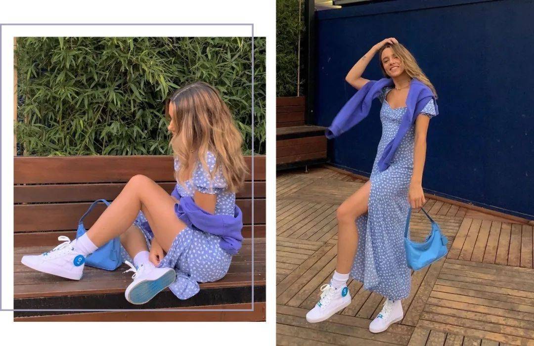 裙子+运动鞋是夏日里最佳的混搭cp,运动鞋能让穿着精致的裙装的你仍然能守住质朴和年少的质感。