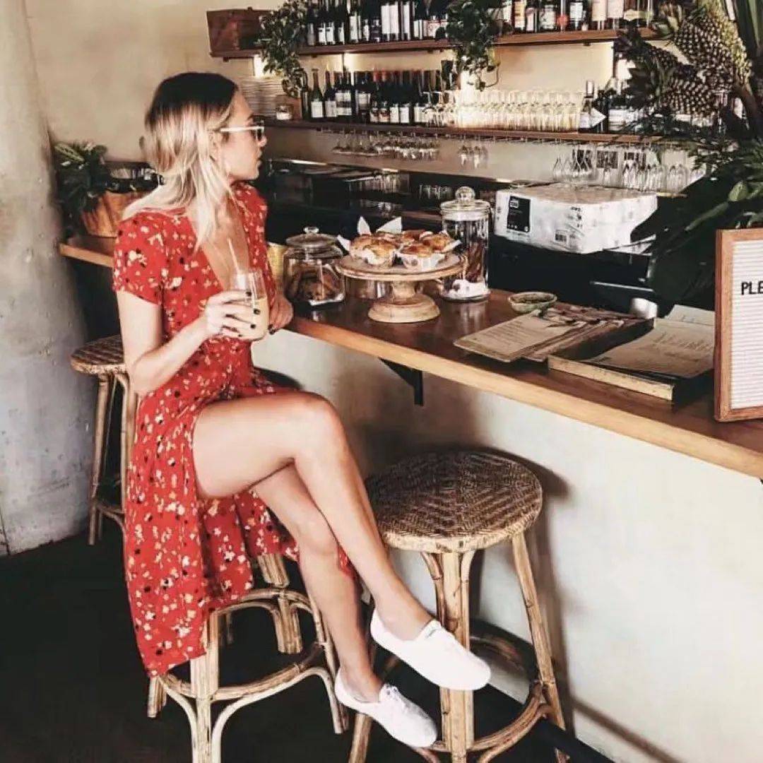 这种开衩的茶歇裙款,若隐若现地秀美腿,不仅增添了几分小性感,还可以在视觉上拉长我们腿部线条,这样即便是搭配平底的运动鞋也照样很显高。